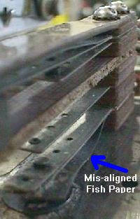 half way through the first coil layer. Right: Three layers of coil windings have now been removed. An extra