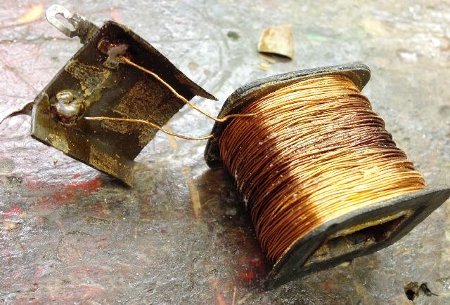 Solder the wire lug to secure the re-attached coil winding.